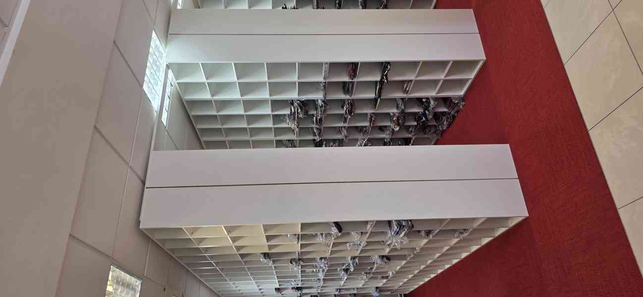 Regálové skříně z bílého lamina (2 cm) vyrobené na zakázku. Ideální na uložení zboží typu fashion nebo obuv, ale také např. pro uskladnění léků apod. Celkem se jedná o téměř 70 skříní po 30 a 20 boxech, tj. cca 2000 úložných boxů. Skříně lze sestavit do sestavy podle vašich možností a požadavků nebo je lze upevnit ke zdi, výška police lze variabilně upravit.