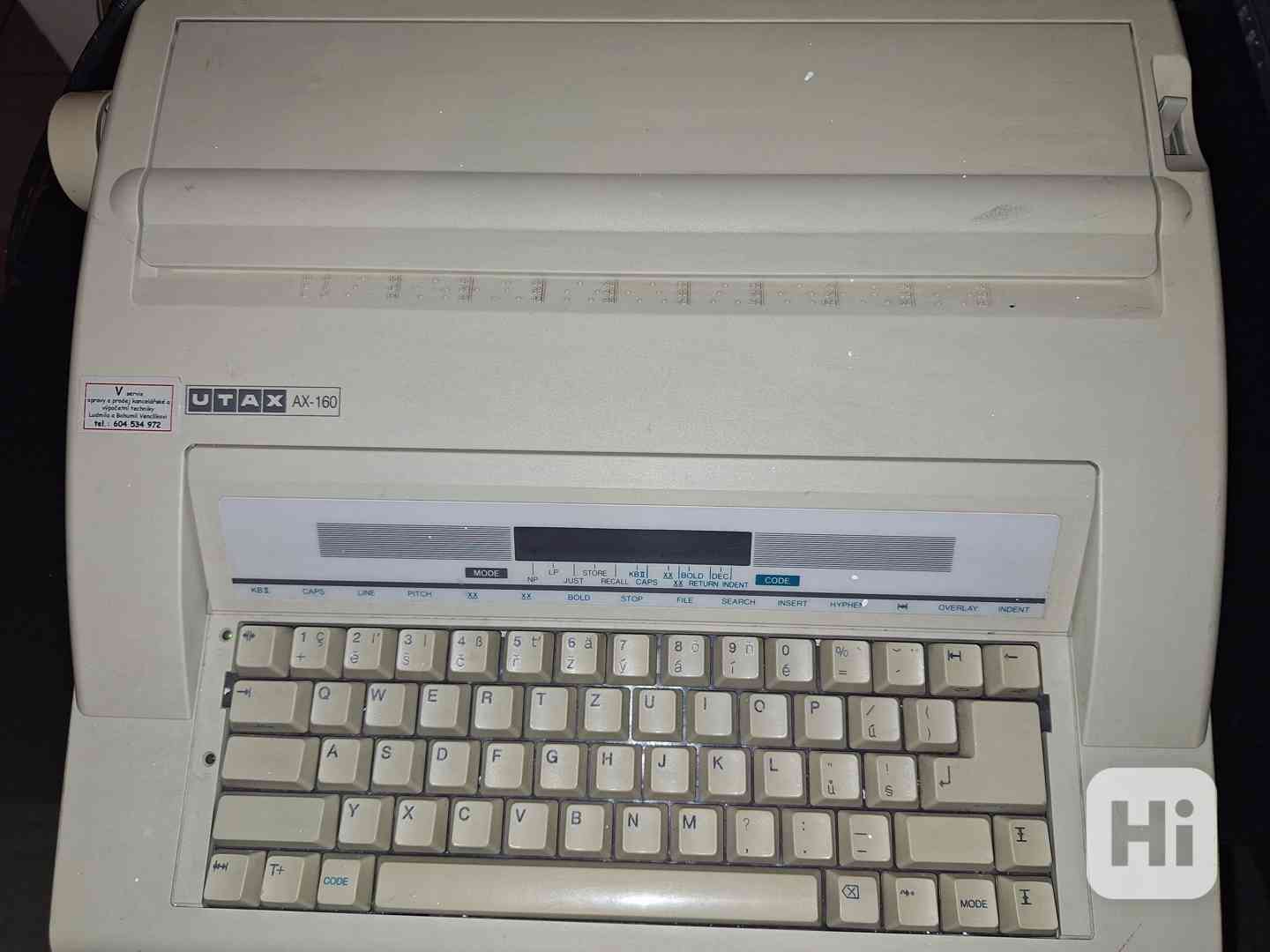 Prodej funkčního nepoužívaného elektrického psacího stroje UTAX AX-160 viz foto. Cena činí 300 Kč. Odvoz z Ostravy. Tel: 7760265 007, E-mail: elektroodbyt@post.cz